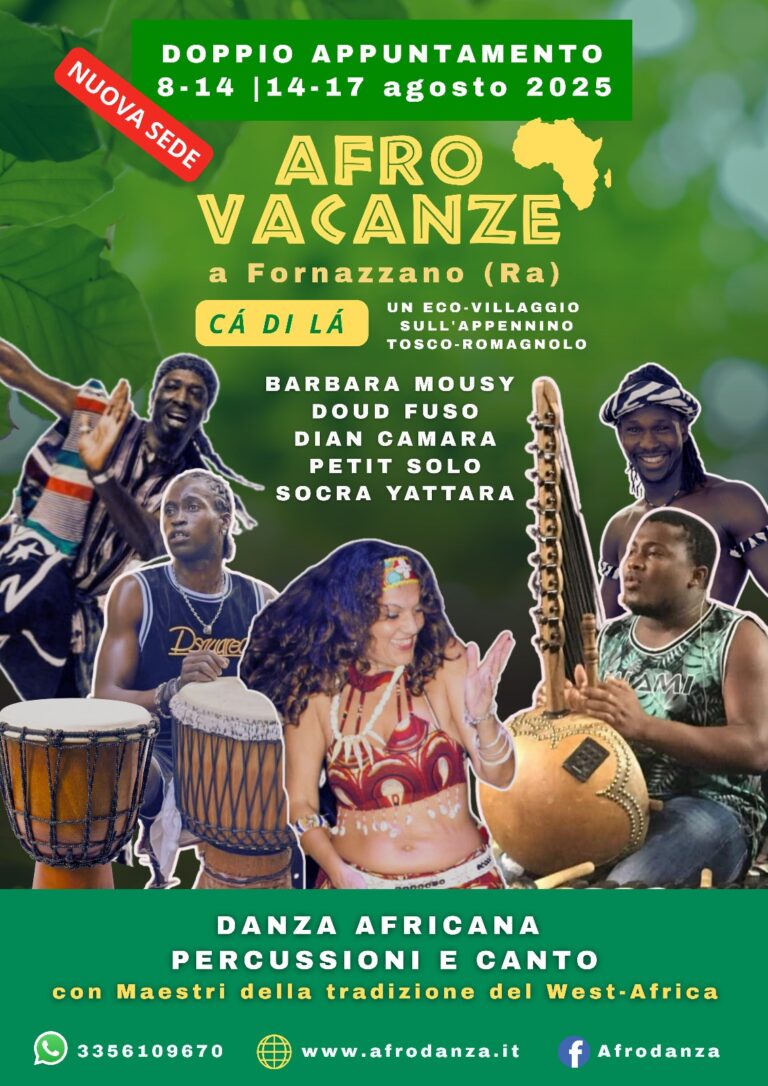 DOPPIO APPUNTAMENTO RESIDENZIALE: DAL 6 AL 12 AGOSTO: DANZA AFRICANA (liv.unico) con Barbara Mousy DANZA AFRICANA (liv. avanzato) con Dian Camara PERCUSSIONI e CANTO Mandengue con Dian Camara